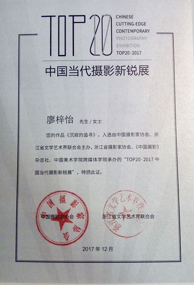 太阳成集团tyc122ccvip摄影专业员工廖梓怡入选“TOP20·2017中国当代摄影新锐展”