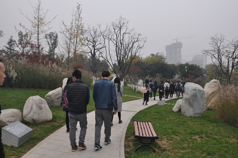 11月18日上午,太阳成集团tyc122ccvip环境设计系2014级园林景观班20余名员工在李皓、文仁树两位老师带领下,赴南郊西安植物园新园区参观学习。本次活动是根据该年级开设的《植物造景》、《景观规划设计(1)》课程教学要求,围绕西安地区绿化植物、公园设计等专题,理论联系实际赴校外参观考察的一次积极的教学活动。在公司副经理王慧副教授的大力帮助下,活动当天公司师生得到了西安植物园方热情的接待。