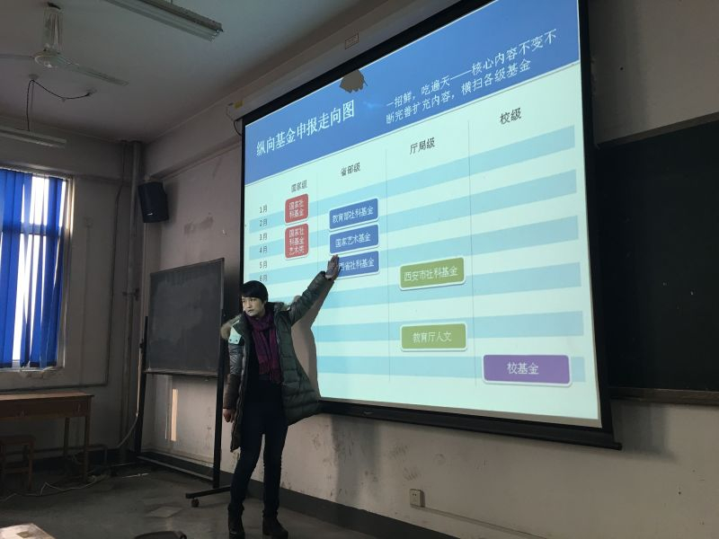 会议特邀陕西省文化厅艺术处李广顺处长进行艺术类科研课题指导工作,并与公司教师就“如何做好艺术类课题申报”进行座谈。李处长介绍了国家和陕西省艺术类社科基金的设立背景、项目类别、申报渠道、申报时间、如何选题、撰写申报材料、注意事项等内容,并就青年教师关心的热点问题进行了详细解读。座谈会期间,李处长还向公司赠送了个人书法作品《张载的语录》。整个座谈会持续了两个小时,现场气氛热烈。