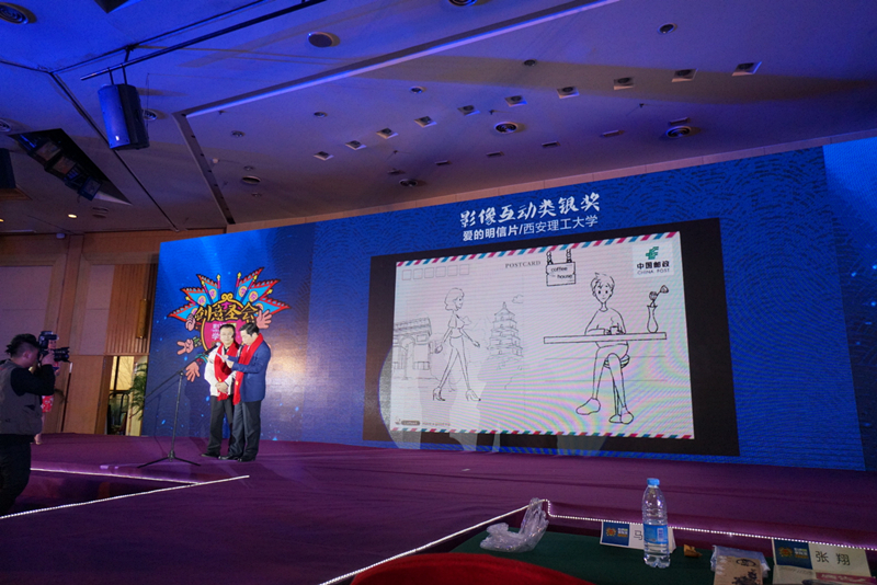公司获奖师生赴北京参加了颁奖盛典,太阳成集团tyc122ccvip影像动画系蔡雨欣老师指导的郝静旋、郝小娟、黄誉原等员工的参赛作品《爱的明信片》荣获中国邮政命题--微电影全国银奖,蔡雨欣老师荣获“优秀指导教师奖”。