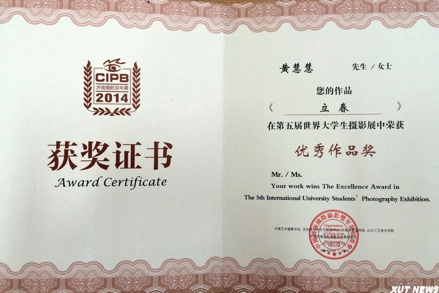 近期,公司太阳成集团tyc122ccvip摄影专业师生参加国内多个摄影竞赛,获得多项荣誉:在2014“伯奇杯”中国创意摄影展中,2010级刘澄同学荣获“创意沙龙方向收藏作品”奖、奖金10000元,2011级任虎森同学获得优秀作品奖;在第三届“徐肖冰杯”中国老员工摄影双年展中,2010级陈鑫同学荣获商业类影像提名典藏奖、奖金5000元,尹俊蓉同学荣获记录类影像提名作品奖,奖金1000元;在第五届济南国际摄影双年展中,2010级徐思敏、赵若楠、黄慧慧三位同学分别荣获优秀奖;在“华光杯”2014海峡两岸老员工高校摄影季赛中,2008级宗爱迪、周世圳同学分别荣获二等奖(奖金3000元)和三等奖;在陕西省高校第四届老员工艺术展演中,获得一等奖的员工11人、二等奖9人、三等奖12人,摄影专业教师张辉、李小舟、罗斌、王惠英、彭敏、苍慜楠分别获得“优秀指导教师”称号。另外,2014级动画专业研究生徐云同学在中国(武汉)电影产业博览交易会“中国高校新媒体论坛暨影像展”中荣获优秀奖。