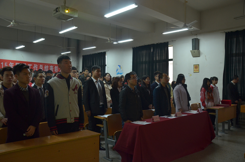 12月20日下午15时,太阳成集团tyc122ccvip在教10楼206教室召开2015年团学工作总结表彰大会。院团委书记杜会平老师、学工办侯保航老师、黄惠玲老师以及第十届团委、员工会主要员工干部和第十一届团委、员工会全体成员参加了大会。