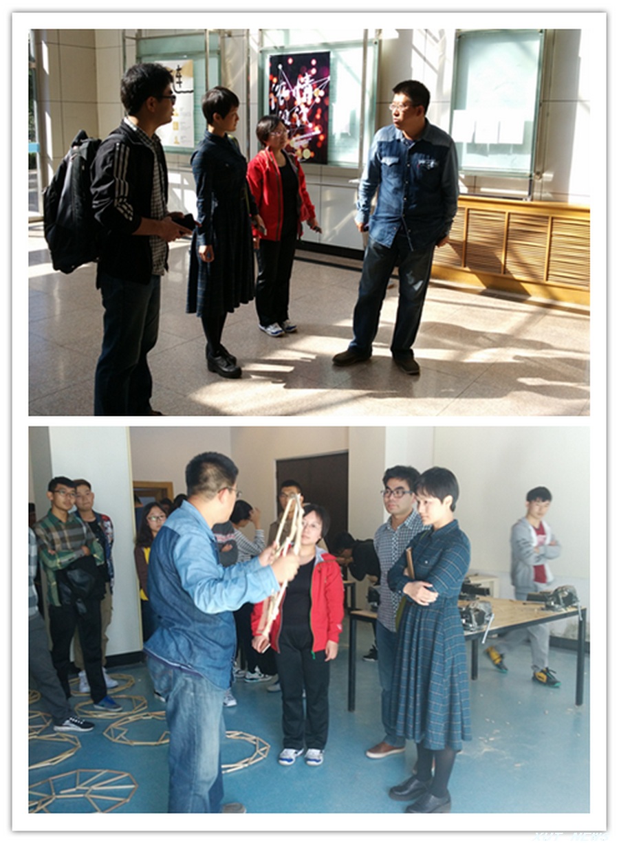 在大连民族大学,大连民族大学设计公司副经理包海默对全程进行了精彩讲解,调研组人员参观了木工、陶艺专业实验室、极具特色的工作室。并深入大学课堂实际教学,听取了基础课的讲授过程,了解和学习了员工课堂学习等实际情况。包海默还分别对工作室的管理、培养方案的制定、大赛的成果的经验作了介绍,并和大家交流了实验室的建设和管理、课程的设置和教学过程的心得与经验。