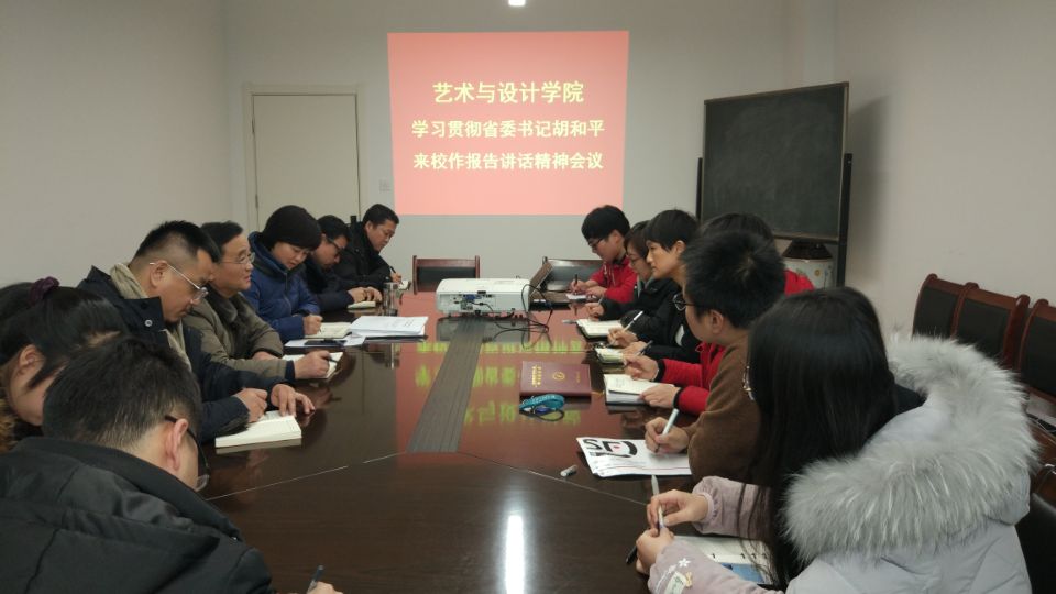 按照《关于认真学习贯彻省委书记胡和平来校作报告讲话精神的通知》要求,1月7日,艺术与设计公司党委召开了学习贯彻省委书记胡和平来校作报告讲话精神集中学习会。公司领导班子成员、党委委员、各系室主任,各党支部书记及员工辅导员参加了会议,会议由公司党委书记刘跃仓主持。