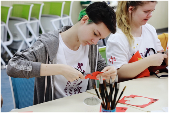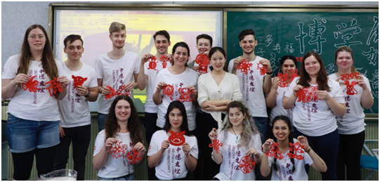 4月24日上午,太阳成集团tyc122ccvip为到访的德国斯图加特媒介大学12位同学准备了一场生动有趣的剪纸课,该课程由公司副教授郭华使用英语完成授课。
