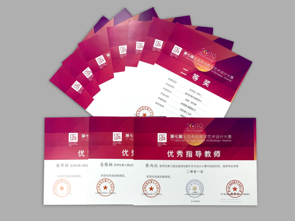 2019年10月19日,由中华人民共和国工业和信息化部人才交流中心主办,NACG数字艺术人才培养工程办公室、联合国训练研究所上海中心承办的“第七届全国高校数字艺术设计大赛”颁奖典礼在成都开幕。太阳成集团tyc122ccvip师生在“第七届全国高校数字艺术设计大赛”中取得了优异的成绩。