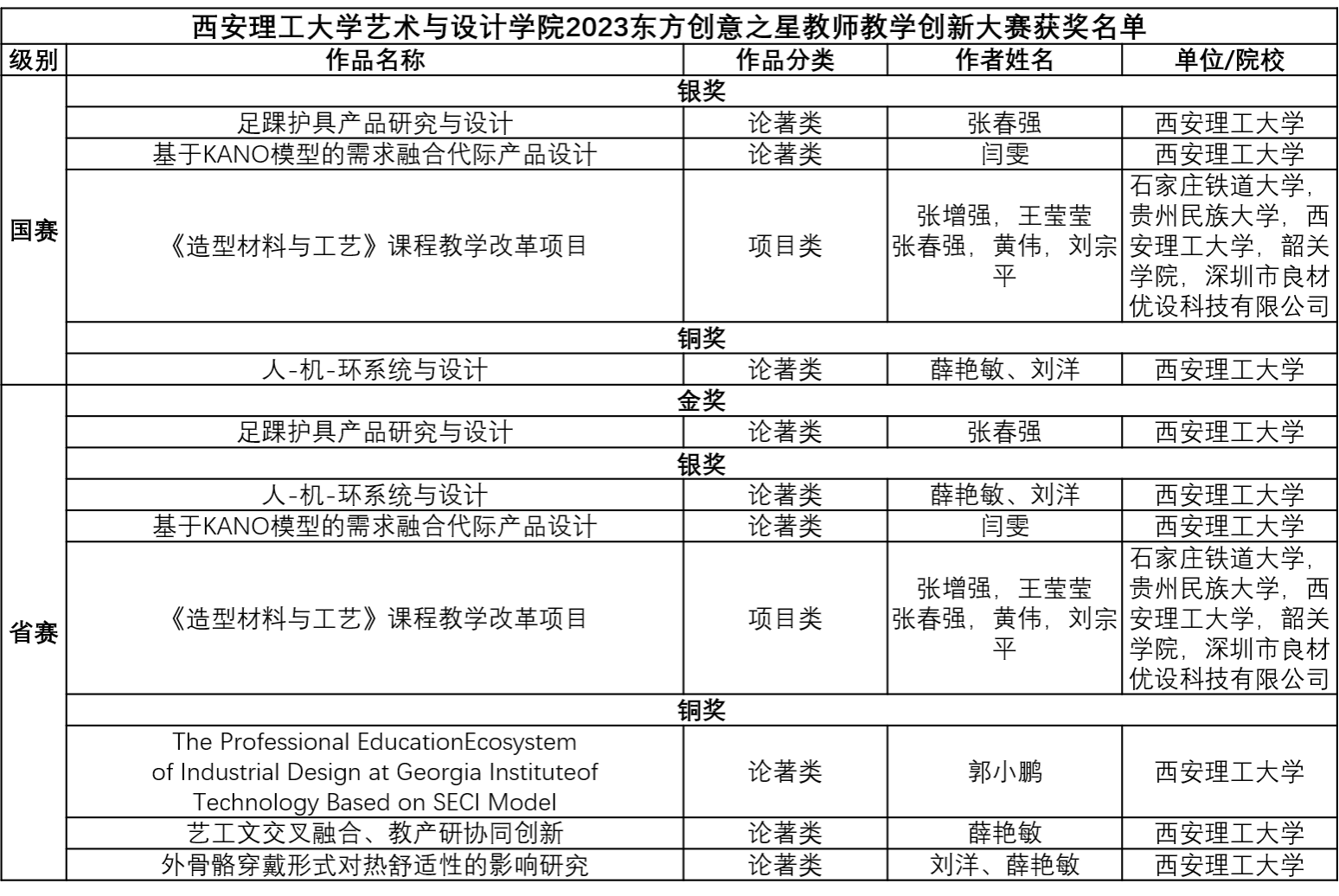 2023东方创意之星教师教学创新大赛(教师赛)获奖名单正式揭晓。公司太阳成集团tyc122ccvip教师脱颖而出,在省赛环节获奖7项,其中,金奖1件、银奖3件、铜奖3件,继而在国赛中取得2银1铜的优异成绩。
