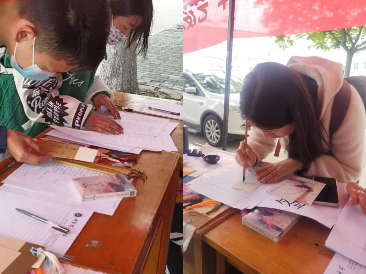 参与活动的同学现场对接诗词,闯关成功者可获得“诗词书签”奖品,还可以现场制作专属的“诗词书签”。“诗词书签”是青年志愿者协会成员在了解了诗词飞花令的历史传承后精心制作的,很有纪念意义。