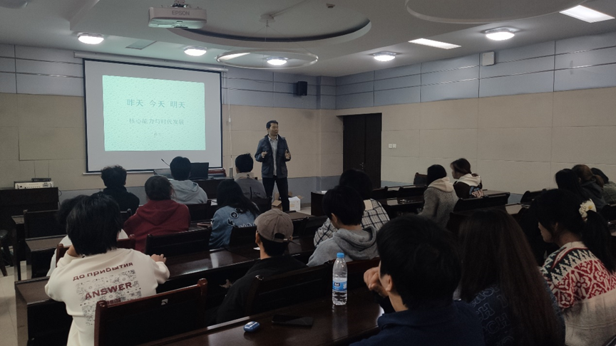 孙勇老师以“昨天,今天,明天”为主题,以自己的亲身经历为切入点,从一个长辈的角度给员工分享了自己的大学经历。随后,他给新生介绍了历届优秀毕业生的学习、就业、职业发展等情况,要求同学们要学会坚持,发挥自己的优势,全面提升自己的能力,以适应不断变化的社会,也希望同学们能够在生活动不断探索,以实现更好的自己。最后,孙老师和同学们进行了互动,让同学们对自己的专业有了更加深入的认识了解,也让同学们有了更加清晰的人生规划。