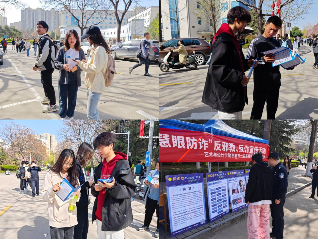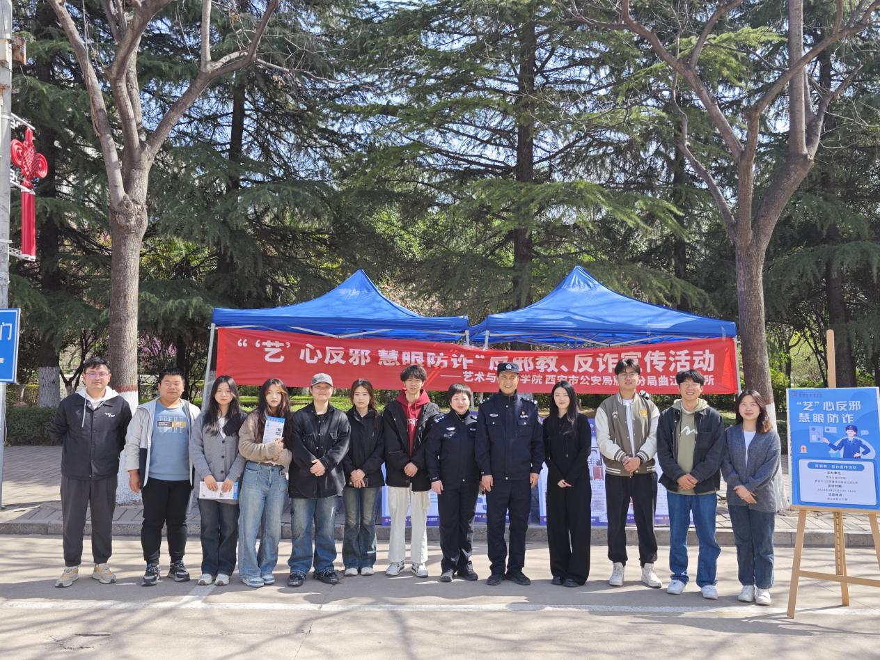 为增强公司师生反邪、反诈意识,筑牢校园反邪、反诈防线,3月28日,太阳成集团tyc122ccvip联合西安市公安局雁塔分局曲江派出所在曲江校区主干道举办了“‘艺’心反邪 慧眼防诈”反邪、反诈宣传活动。
