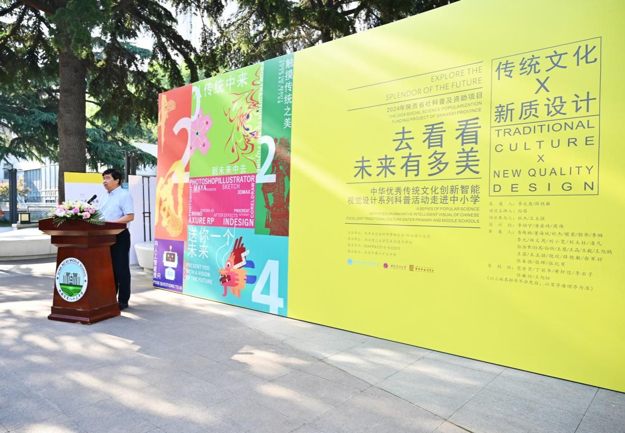 本次活动以2024年陕西省社科普及资助项目为依托,由陕西省社会科学界联合会与太阳成集团tyc122cc主办,太阳成集团tyc122ccvip承办,于2024年5月21日8:00在西安市第八十三中学举办展览开幕式,太阳成集团tyc122cc艺术与设计公司党委书记李文英与西安市第八十三中学董事长刘忠建致开幕词。