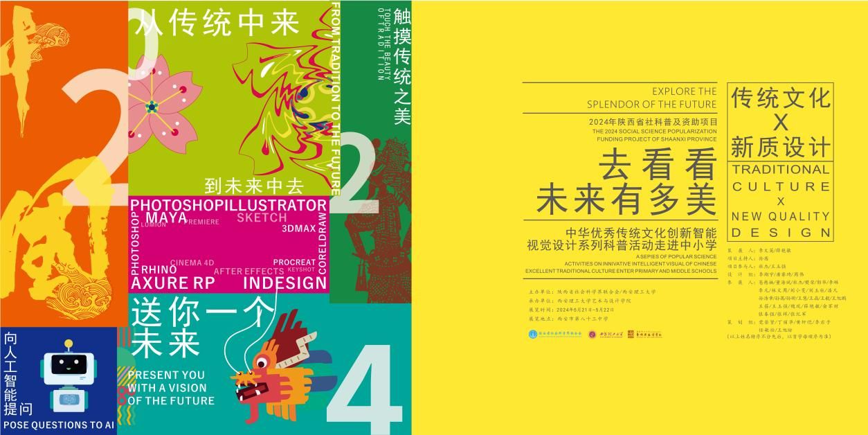 此次活动也是视觉传达系教工党支部开展的党日活动,教师团队的设计通过运用先进的数字技术和人工智能技术,将文化元素以全新的视角和形式展现,也是对于2023年9月习近平总书记在黑龙江考察与2024年两会期间提出并强调的“新质生产力”核心概念的有力诠释。
