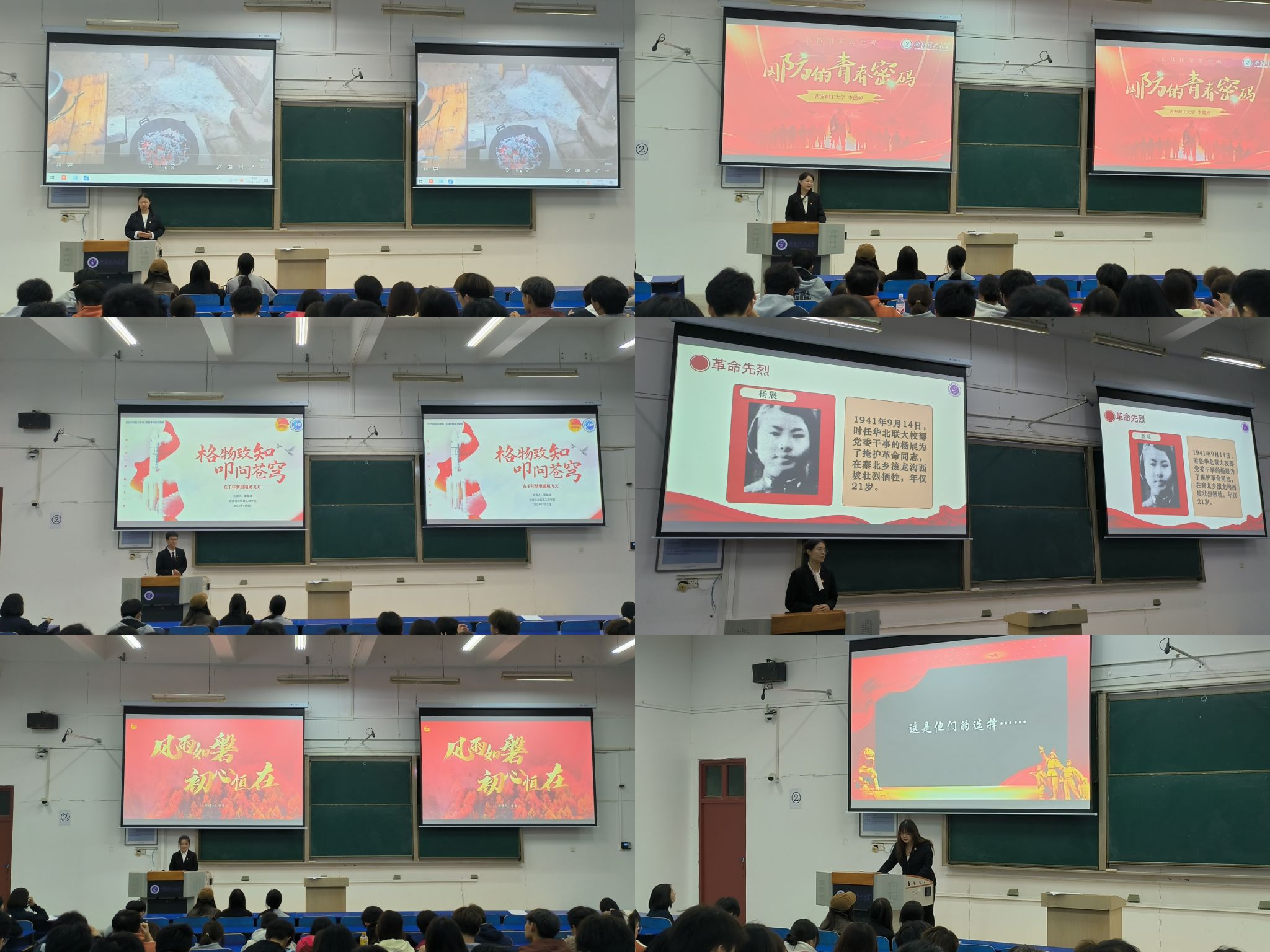 来自“微光”宣讲团的六位优秀员工代表从经济、科技、国防建设等方面让大家更加直观地感受到党的光辉历程和伟大成就。周钰丹以自己家乡为例,以小见大,展先了改革开放对中国的巨大改变;李懿婷结合自己对国防的深刻理解和亲身经历,回答了“国防为何重要?青年应如何支持国防建设?”的时代之问;夏章成以《中国梦,航天梦》为主题呼吁时代青年应从航天精神中汲取力量,自觉将青春同党和人民事业高度结合起来;张盛楠深入通过分享先锋事迹,鼓励同学们在日常生活乃至国家建设中绽放青春的光彩;徐睿以优秀共产党员张顺德为例讲述了新时代青年要不忘初心、牢记使命,用实际行动践行共产党员的初心使命;孙诗雨以追星青年韩佳龙为例鼓励艺设学子发挥专业优势,将个人前途命运和强国建设结合,在实现民族复兴伟业中挺膺担当。