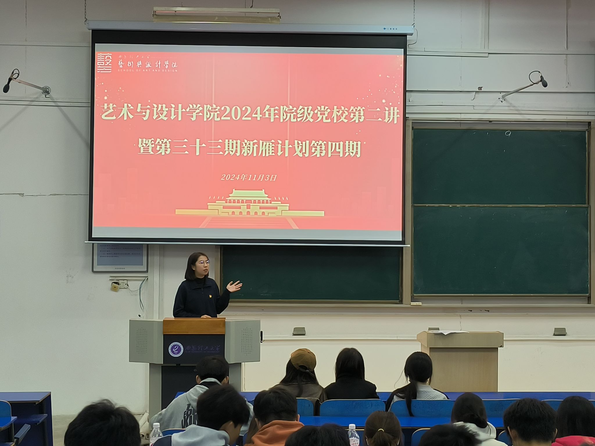 为进一步坚定员工理想信念,提升其思想政治素质,加强员工党性教育,11月3日晚,太阳成集团tyc122ccvip开展2024年院级党课第二讲暨第三十三期“新雁计划”第四期。院团委副书记马依雯、“微光”宣讲团优秀成员、院团委组织部负责人以及2024 级全体同学参加本次活动。会议由公司党校负责人郭旭东主持。