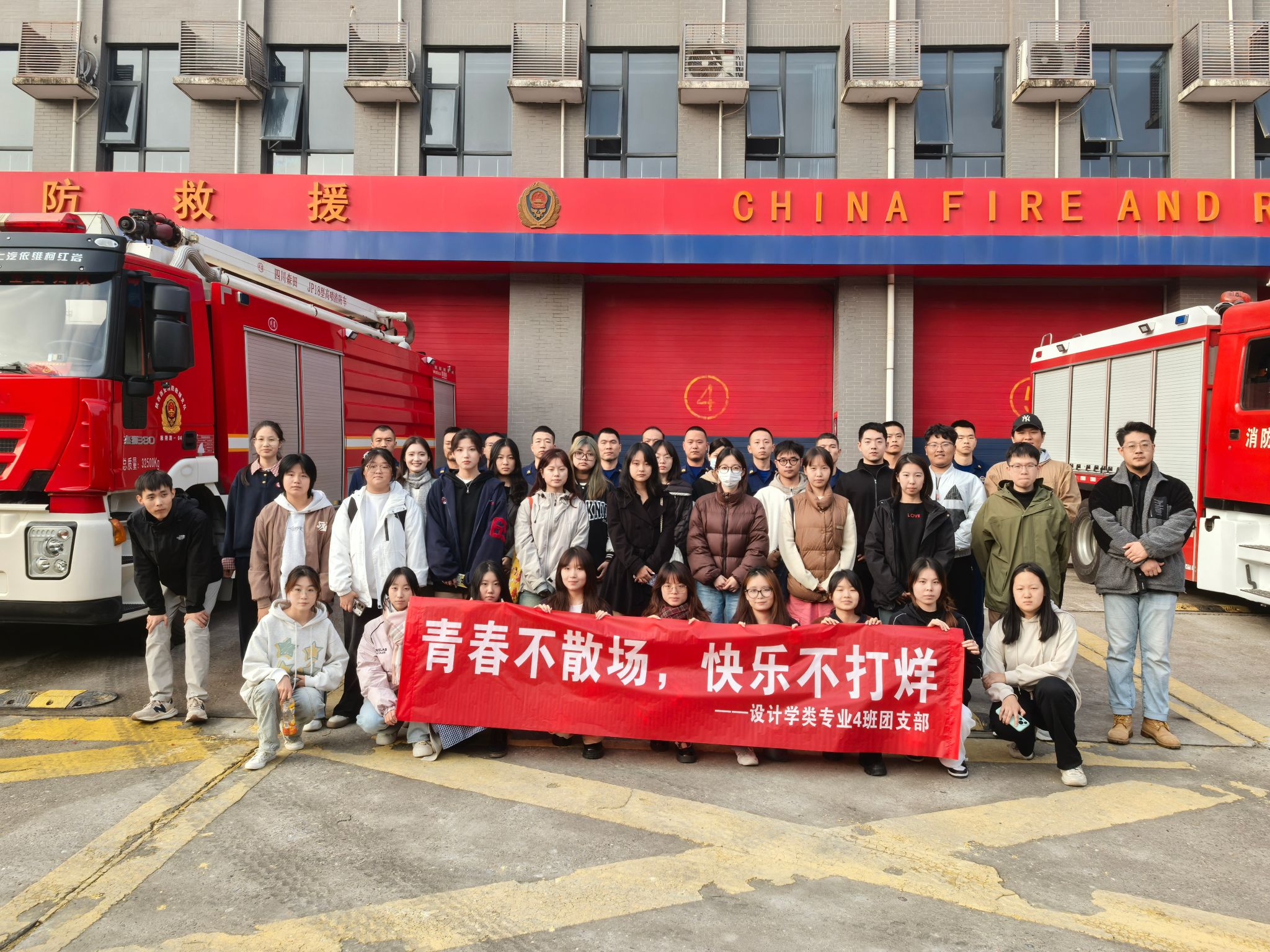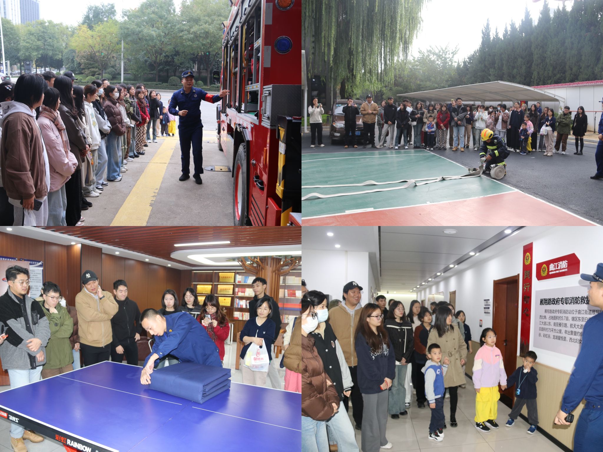 活动当天,消防队员向大家展示了各类消防车的救援装备,耐心细致地讲解了功能和使用场景,让同学们对消防车的“全能”属性有了更直观的认识;消防队员们还进行了精彩的技能展示,他们迅速穿上厚重的消防服,动作敏捷地攀上训练塔,模拟了真实的灭火救援场景。随后,消防队员带领大家参观了宿舍内务并亲自示范如何叠出标准的“豆腐块”被子,不仅让大家体验到了消防队员们的严谨作风,更学会了如何在日常生活中保持整洁和自律;活动的最后,同学们还参观了消防文化长廊、文体室等区域,进一步贴近消防队员们的工作和生活。