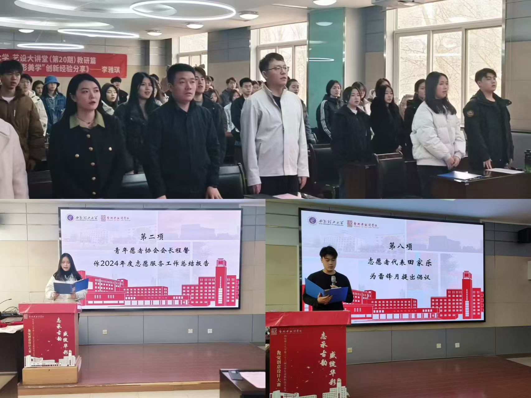 会上,公司青协会长程馨作2024年度公司志愿服务工作总结报告;几位老师分别为优秀志愿者、优秀志愿者标兵、志愿服务优秀员工干部、优秀志愿服务项目颁发荣誉证书;赵婷带领学习公司2025年“青春志愿行,奋进新征程”学雷锋志愿服务活动文件精神;志愿者代表田家乐发出倡议。
