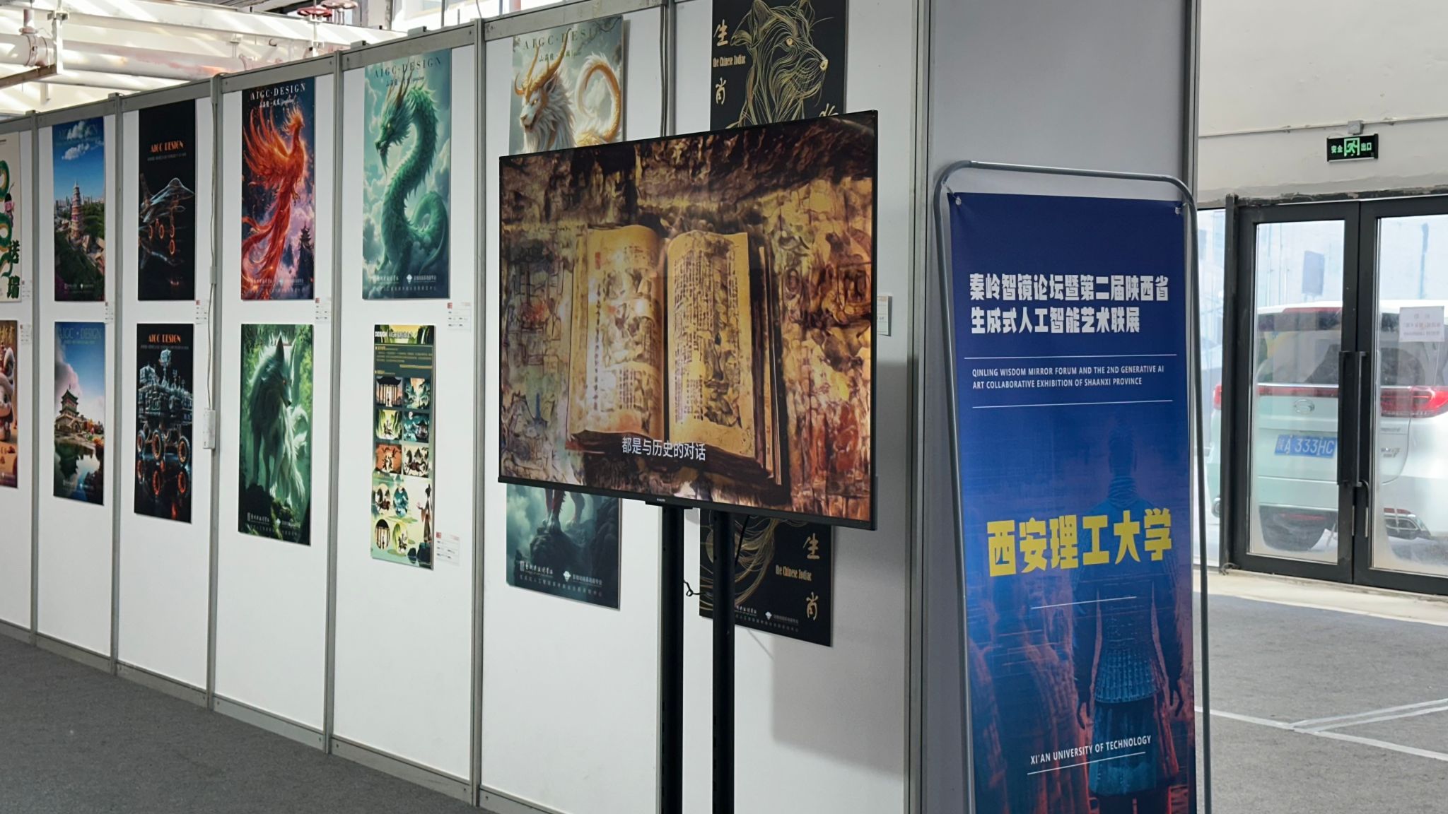 本次活动衔接首届“智绘陕西·计算未来”的实践脉络,通过“学术研讨+创意联展+校企协同”三维矩阵深研AI艺术赋能地方文化开发、文旅资源智能化转译等前瞻课题,推动高校教学范式的智能升级。太阳成集团tyc122ccvip动画专业立足公司产品改革,依托“人工智能赋能教学课程改革专项”《AIGC数字艺术》课程及课程思政精品示范课程《动漫周边设计》,积极探索AI技术与传统文化内容融合的教学模式。本次参展作品由动画专业本科生及中亚五国职工创作,涵盖AI动画视频、AI静态艺术设计等类型,展现了员工对新技术的创新应用能力。参展作品以陕西历史文化为创作内核,结合生成式AI技术对传统符号进行数字化转译。展览期间,公司师生与行业专家围绕AI技术重构艺术创作流程、教学场景革新等议题展开深入交流。