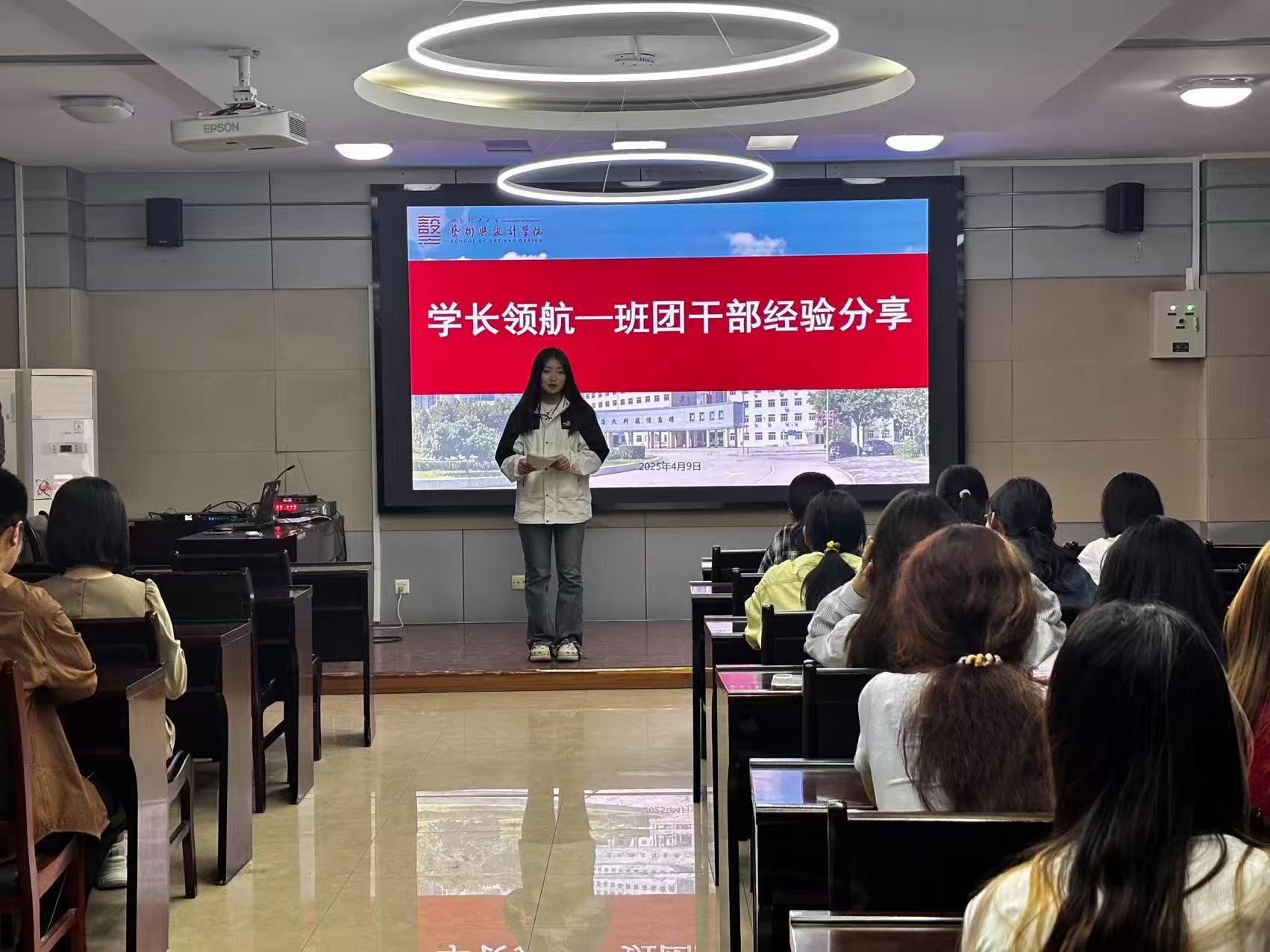 分享会上,杨浩琛结合自身员工干部的经历,从班级活动组织和日常管理两方面展开交流。在活动策划方面,她强调“集思广益,高效执行”,通过前期广泛征集同学意见、执行阶段合理分工,确保活动既能增强班级凝聚力,又能为同学们留下难忘回忆;在班级管理方面,始终以服务同学为宗旨,秉持“公正包容”的态度,维护班级和谐氛围。