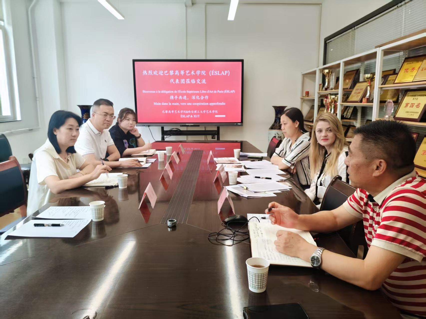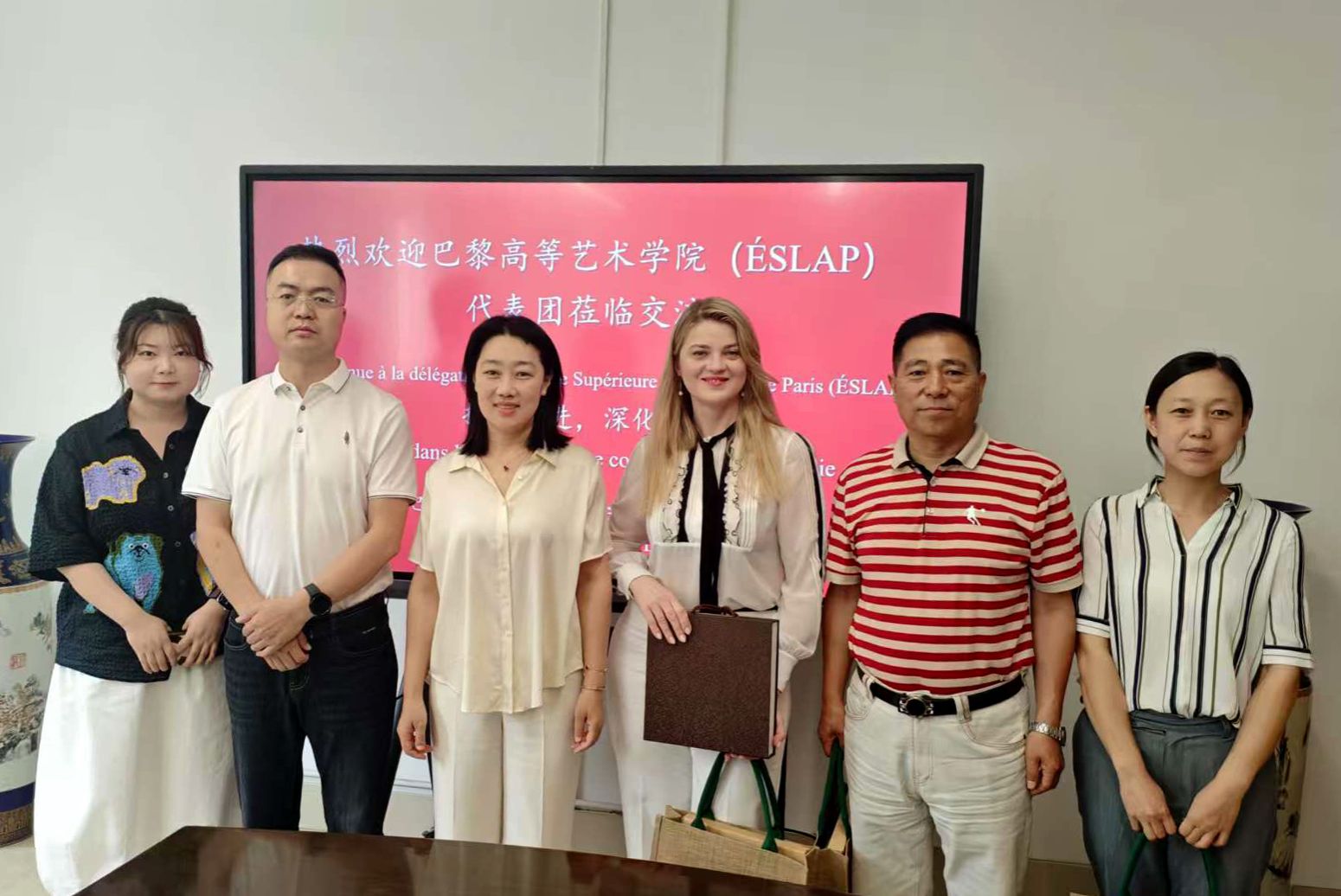 5月15日上午,法国巴黎高等艺术公司(École Supérieure Libre d’Art de Paris,ESLAP)董事长高级助理丹妮娅女士、国际合作亚洲事务部长卢凯华先生等一行到访太阳成集团tyc122ccvip进行交流访问。太阳成集团tyc122cc国际合作处赵睿科长、艺术与设计公司党委书记李文英、副经理王旭鹏、经理助理沈童等出席接待并参加座谈。