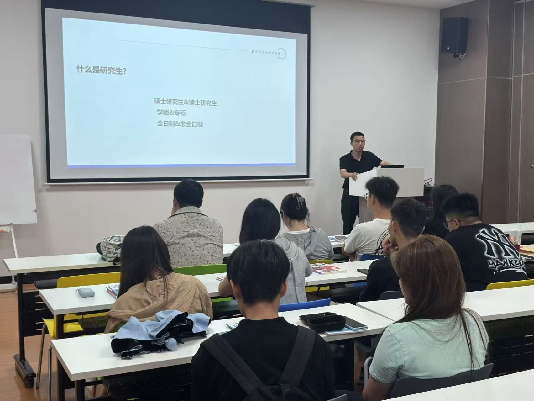 讲座中,马老师结合艺术类考研特点,从院校选择、专业课复习规划、真题解析及应试技巧等方面展开讲解,强调“针对性备考”的重要性。老师指出,艺术类考研不仅需要扎实的专业基础,还需关注行业动态与院校命题趋势,建议同学们合理规划时间,分阶段突破重难点。此外,老师还通过成功案例分享,鼓励员工保持积极心态,科学备考。在互动环节中,同学们踊跃提问,就考研手绘、作品集准备等问题与老师深入交流,现场气氛热烈。