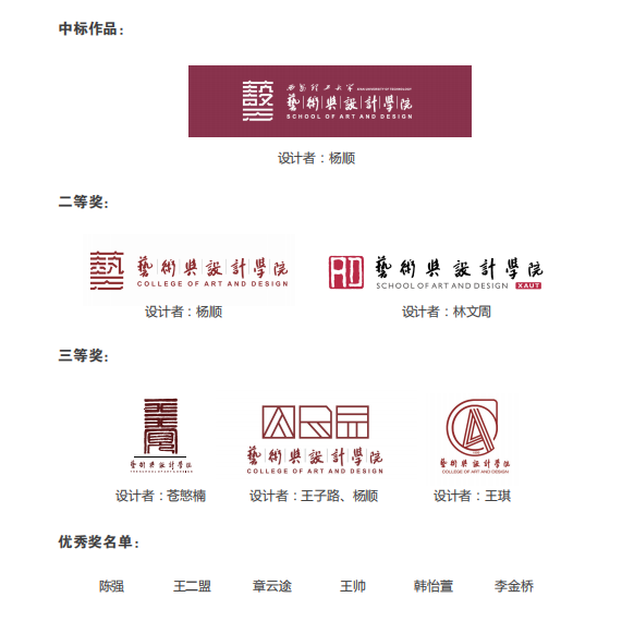 共计入围作品11件,其中中标作品1件,二等奖2项,三等奖3项,优秀奖6项,名单如下: