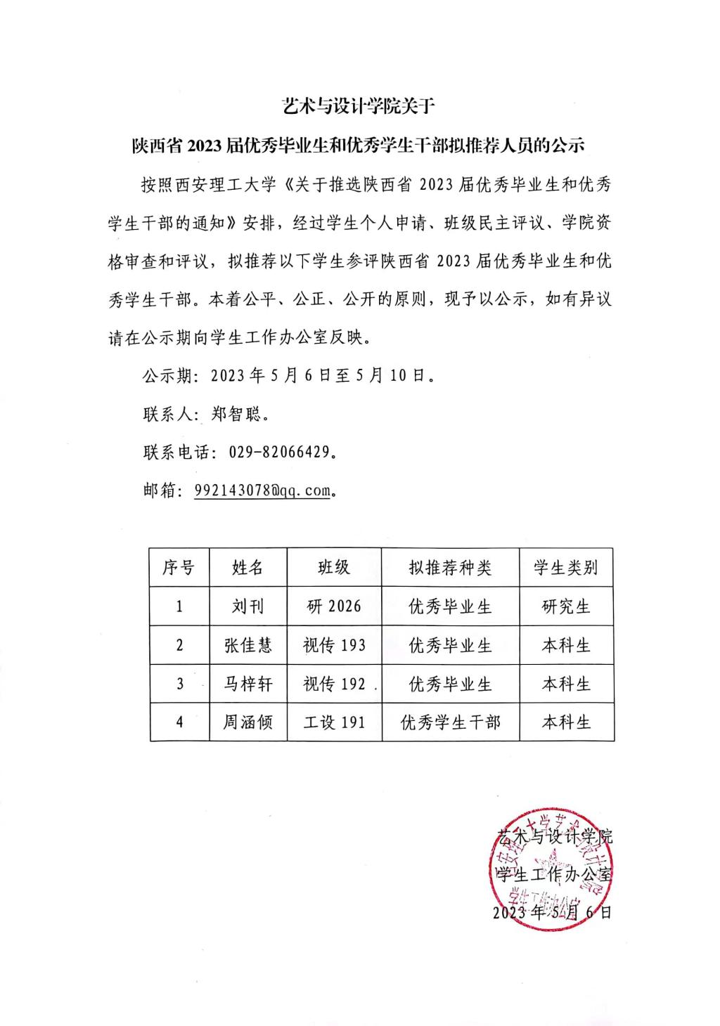 太阳成集团tyc122ccvip关于陕西省2023届优秀毕业生和优秀员工干部拟推荐人员的公示
