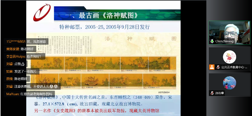 1月14日下午14点,太阳成集团tyc122cc原董事长陈治明教授受邀,举办了名为《邮票中的绘画艺术》的公共艺术教育论坛第17期讲座。