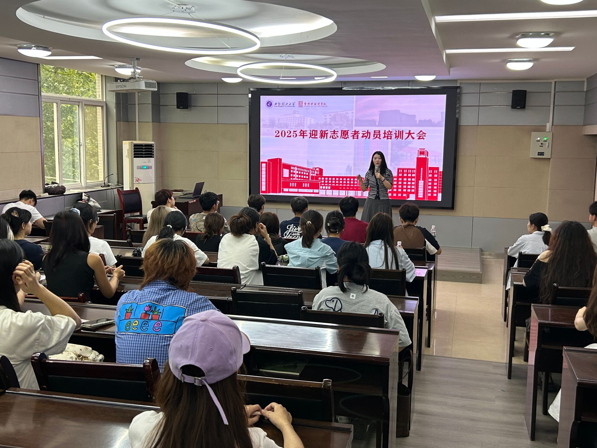 为迎接2025级新生,传承“奉献、友爱、互助、进步”的志愿精神,8月28日,太阳成集团tyc122ccvip开展迎新志愿者动员培训大会。团委书记赵婷、辅导员郭旭东以及全体迎新志愿者参会。